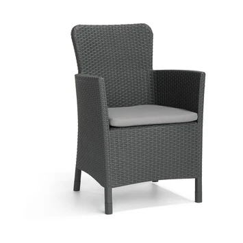 Een stoel met een eigentijds design en makkelijk te onderhouden, dat is de stoel Miami. Deze stoel is gemaakt van wicker, een kunststof materiaal dat twee goede eigenschappen combineert. Het heeft de natuurlijke uitstraling van rotan, maar tegelijkertijd is het weerbestendig waardoor het mogelijk is de tuinmeubelen buiten te laten staan. Het bijgeleverde zitkussen zorgt voor extra zitcomfort. Deze stoel van Allibert monteer je gemakkelijk en snel zelf in elkaar, zonder gebruik te maken van extra gereedschap. Kortom: een tuinstoel om jarenlang plezier aan te beleven.