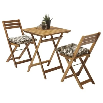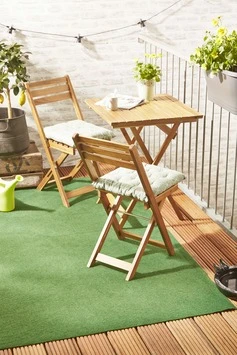 Bistroset Rimini is een balkon- of tuinset die bestaat uit 1 tafel en 2 stoelen. Zowel de tafel als de stoelen zijn beide inklapbaar, wat het opbergen van deze set heel gemakkelijk maakt. Het blad van de tafel bestaat uit 12 smalle planken. Deze tafel is 58 cm breed en 58 cm diep. De tafel is 70 cm hoog. Bistroset Rimini is vanwege zijn compacte afmetingen een leuk setje voor uw balkon of tuin. De set wordt geleverd in een doos.