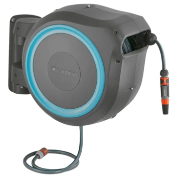 Deze Gardena wandslangenbox roll-up automatic met een 25 meter lange slang, is een uitkomst voor terrassen en kleinere tuinen. Wanneer je na gebruik een korte ruk aan de slang geeft, rolt deze automatisch veilig en gelijkmatig op. De wandhouder geeft de box een 180 graden bereik dankzij het stevige scharnier. Om je Gardena hulpstukken te kunnen opbergen gebruik je de praktische geïntegreerde houder en om het geheel makkelijk mee te kunnen nemen is de box voorzien van een draaggreep. Om na gebruik geen water weg te laten lopen, heeft de wandslangenbox een druppelstop. De 25 meter 13mm slang en 1.5 meter aansluitslang laten je met gemak alle hoeken van uw tuin of terras bewateren.