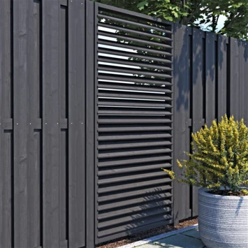 Het Jaloeziescherm is gemaakt van meerdere lamellen voor een shutter effect. Het lamellenscherm ook gekend als een shutterscherm is gemaakt van geïmpregneerd geschaafd vuren hout. Door het impregneren van het hout is dit scherm beter beschermd tegen weersomstandigheden. Dit scherm is ideaal te gebruiken voor bijvoorbeeld tussen een regulier tussenschermen voor of als afscheiding onder een overkapping. De totale dikte is ca. 8 cm en heeft hierdoor een robuuste uitstraling.